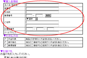 購入商品内容をご確認いただいて、お客様のお名前・ご住所・電話番号などをご入力ください。